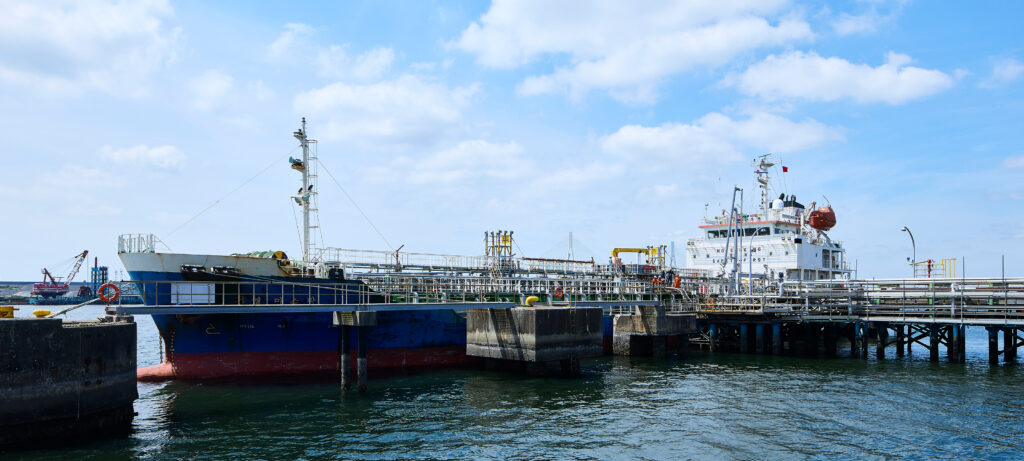 作業現場にて、石油類・液体化学製品の荷役作業を行います。工程ごとに担当を配置し、チームで取り組みます。具体的には…顧客船舶(タンカー船)入港時の監視(安全管理)、船舶やタンクローリーからタンクへの製品分配作業、タンクから製品の払い出し、サンプリング、フォークリフト作業など